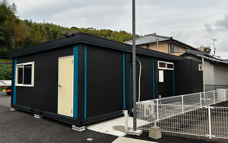 長崎県佐世保市の自動車販売業者を営むN社から、3年前に事務所としてご購入いただいたA-space AC-12型(トイレボックス付)が、”手狭になったため増設したい”とご相談いただきました。