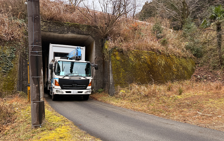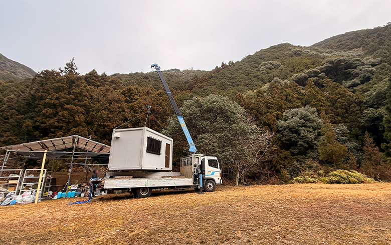 搬入経路は山道で非常に狭く、慎重な搬入・誘導作業が必要とされましたが、無事設置が完了しました。