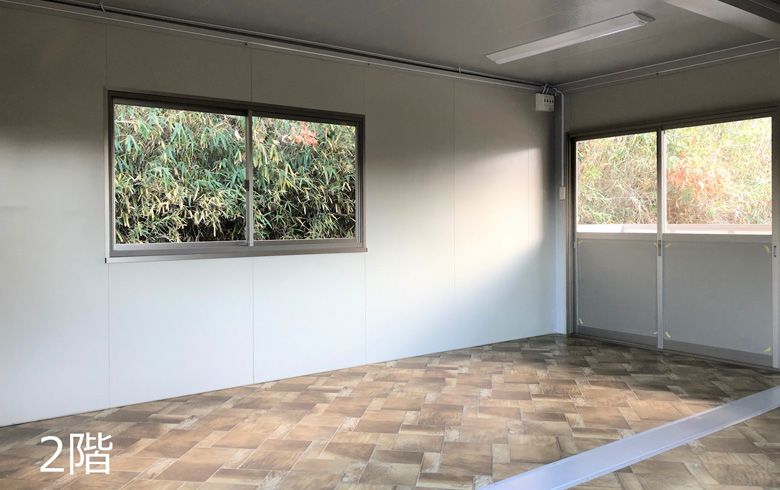 鼻隠し(面)| 本体税別価格 | 5,474,000円(税込6,021,400円) | 坪数 | 7.5坪×2棟 | 寸法外寸 | 幅:5400mm × 奥行き:4600mm × 高さ:2600mm ※各棟 | 室内内寸 | 幅:5250mm × 奥行き:4450mm × 高さ:2320mm ※各棟 | 用途 | 事務所・店舗・その他 | 展示場所 | 展示無し | 店長のコメント | U-prefabオリジナルユニットハウス A-space AC-8型(15畳)2階建てです。 上品な配色の2階建てハウスに仕上げました。 事務所・休憩室・来客スペースなど階で用途を分けてお使い頂けます。 全て新品の部材を使用しておりますが、制作・運搬・設置時に小キズや凹み等つく場合がありますので、アウトレット品扱いとしています。 受注生産品となりますので、納期に約1.5ヵ月程必要となります。 掲載価格は商品代金のみとなり、別途運搬費・設置工事費等が必要になります。 詳しくは大阪富田林展示場までお問い合わせください。 |
