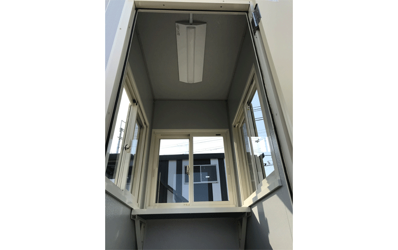 鼻隠し(面)| 本体税別価格 | 392,000円(税込431,200円) | 坪数 | 0.4坪 | 寸法外寸 | 幅:900mm × 奥行き:1350mm × 高さ:2440mm | 室内内寸 | 用途 | 守衛室 | 展示場所 | 展示なし | 店長のコメント | U-prefab オリジナルの守衛室K-space K-G0.3型(0.8畳)です。 オリジナルの壁パネルを使用した、スタンダードな守衛室です。 網戸付き小窓を3面、室内にはカウンターを取り付けております。 屋根、壁には断熱ウレタンパネルを採用しました。 守衛室をお探しのお客様は是非ご検討ください。 設置後、電気をつなげばすぐにご利用になれます。 狭い場所では2tユニック車での納品が可能な商品です。 全て新品の部材を使用しておりますが、製作・運搬・設置時に小キズや凹み等つく場合がございますので、アウトレット品扱いとしています。 掲載価格は商品代金のみとなり、別途運搬費・設置工事費等が必要になります。 受注生産品となりますので、納期に約1.5ヶ月程必要となります。 詳しくは大阪堺第2展示場までお問合せください。 |