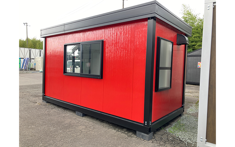 鼻隠し(面)| 本体税別価格 | 1,230,000円(税込1,353,000円) | 坪数 | 3.1坪 | 寸法外寸 | 幅:4500mm×奥行き:2300mm×高さ:2600mm | 室内内寸 | 幅:4360mm×奥行き:2160mm×高さ:2290mm | 用途 | 事務所・店舗・休憩所・作業場・離れ・こども部屋 | 展示場所 | 宮城岩沼展示場 | 店長のコメント | 3.1坪(約6畳)サイズのユニットハウスが入荷しました。 鮮やかなレッド×ブラックの組合せがともて印象的なハウスです。 事務所や店舗以外にも休憩所やワーキングスペース、こども部屋にもオススメです。 設置・運搬費は別途となります。 お見積りは無料ですので、お気軽にお問合せ下さい。 宮城岩沼展示場で現物をご覧いただけます。 ぜひ一度 サイズ感や色のイメージ等ご確認下さい。ご来場お待ちしております! お客様ご希望のドアや窓等をお選びいただき、カスタムメイドも可能です。 「こんなイメージのハウスが欲しい!!」がございましたらお気軽にお問い合わせください! ※新品の部材を使用しておりますが、組立・運搬時にキズやへこみが付く場合がある為、アウトレット品でのご案内となります。 ※外国製の為、耐雪仕様ではありません。降雪時はこまめに雪降ろしを行っていただく等の積雪対策をお願い致します。 ※対応エリアは、青森・岩手・秋田・宮城・山形・福島に限らせていただきます。 |