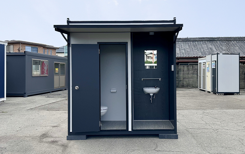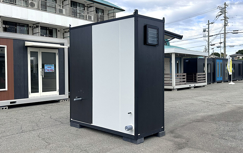 鼻隠し(面)| 本体税別価格 | 53万円→498,000円(税込547,800円)※6%OFF | 坪数 | 0.6坪 | 寸法外寸 | 幅:2280mm×奥行き:900mm×高さ:2385mm | 室内内寸 | 用途 | トイレ・手洗い | 展示場所 | 大阪岬展示場 | 店長のコメント | U-prefabオリジナルトイレハウス K-space K-T0.6型(1.2畳)が入荷しました。 洋式便器の取付面・手洗い器の取付面と右側面の壁に両面黒木目の壁パネルをアクセントとして採用しており、洋式トイレと手洗い器を省スペースに詰め込んだ大変お買い得な一品です。 追加で出入口庇を取り付けることもオススメです。 全て新品の部材を使用しておりますが、製作・運搬・設置時に小キズや凹み等つく場合がございますので、アウトレット品扱いとしています。 狭い場所では2tユニック車での納品が可能な商品です。 展示品のため、受注後最短10日程度で即納可能な商品です。 掲載価格は商品代金のみで、別途運搬費・設置工事費等が必要になります。 大阪岬展示場でご覧いただけます。是非一度お越しください。 |