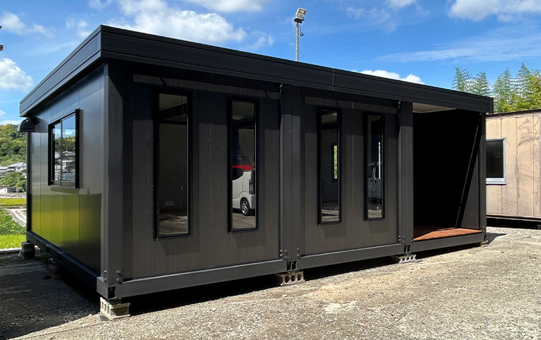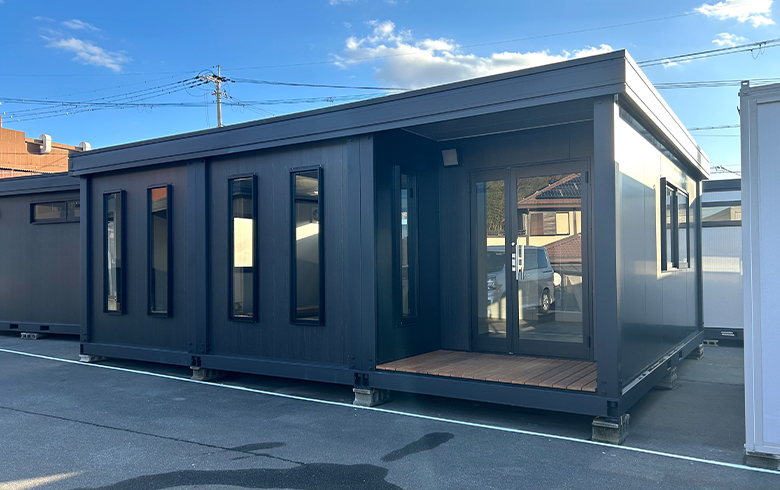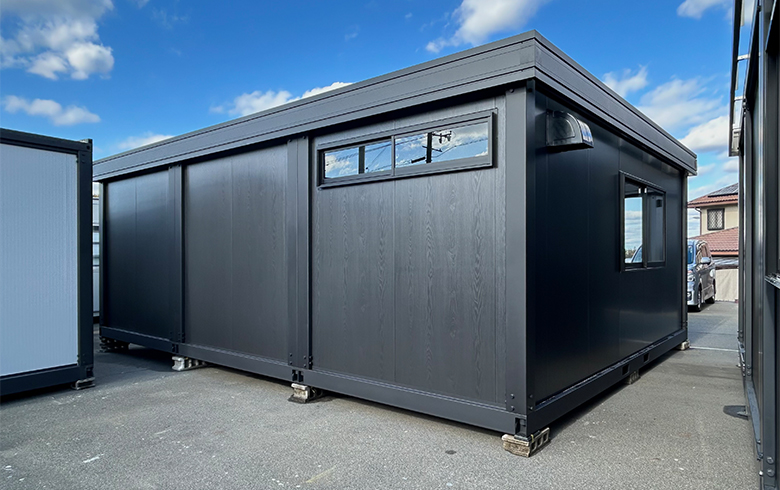 鼻隠し(面)| 本体税別価格 | 3,810,000円→3,467,000円(税込3,813,700円)※9%OFF | 坪数 | 11.3坪 | 寸法外寸 | 幅:6900mm×奥行き:5400mm×高さ:2600mm | 室内内寸 | 幅:6750mm×奥行き:5250mm×高さ:2320mm | 用途 | 事務所・店舗・その他 | 展示場所 | 大阪富田林展示場 | 店長のコメント | U-prefabオリジナルユニットハウス A-space AC-12型玄関デッキ仕様(22.6畳)が入荷しました。 人気のフルブラックで仕上げています。 玄関のウッドデッキは丈夫で美しい天然木のウリン材を採用しており、雨の日でも快適に出入りしていただけます。 事務所や店舗にオススメです。 頑丈な鉄骨フレームを採用しているため、ご希望で2階建てにすることも可能です。 全て新品の部材を使用しておりますが、組立時に小キズ等つく場合がございますので、アウトレット品扱いとしています。 展示品のため、受注後最短10日程度で即納可能な商品です。 値引前価格にて、ドア・窓の位置やカラーを変更したオーダー品を、受注後約1.5ヶ月で製作可能です。 掲載価格は商品代金のみとなり、別途運搬費・設置工事費等が必要になります。 大阪富田林展示場でご覧いただけます。是非一度お越しください。 ※こちらの商品は、関西エリアのお客様限定とさせていただきます。 |