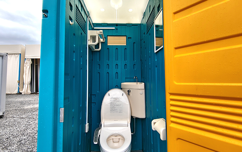 NO.5763 中古仮設トイレ 洋式水洗(温水シャワー便座付) ※現品限り