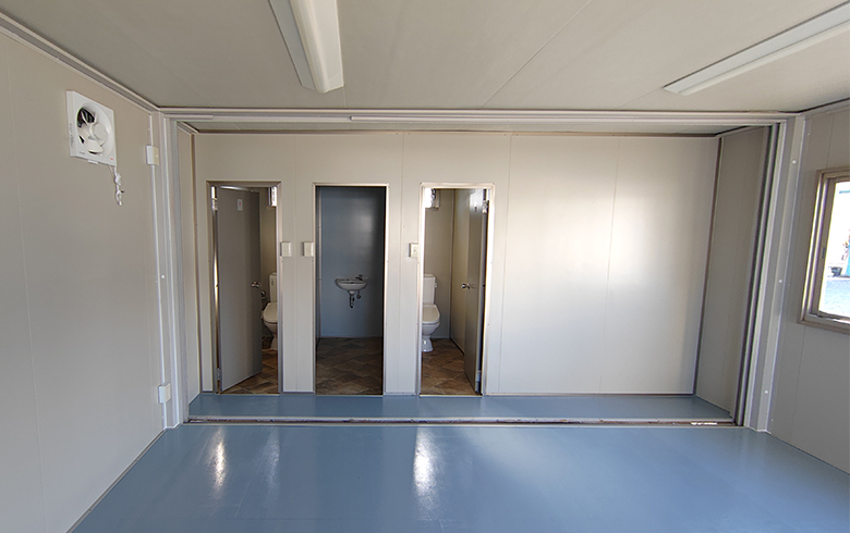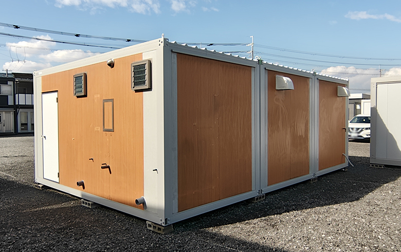 鼻隠し(面)| 本体税別価格 | 2,080,000円(税込2,288,000円) | 坪数 | 9.4坪 | 寸法外寸 | 幅:6930mm×奥行き:4510mm×高さ:2490mm | 室内内寸 | 幅:6850mm×奥行き:4430mm×高さ:2290mm | 用途 | 事務所・休憩室 | 展示場所 | 大阪堺第2展示場 | 店長のコメント | U-prefabオリジナルユニットハウス 中古A-space AC-9型トイレブース付(18.8畳)です。 この商品はお客様の不要になったユニットハウスをお預かりし、弊社でリノベーションして販売しております。 ライトブラウンの木目壁パネルとシャイングレーのサッシ類が特徴のユニットハウスです。 男・女洋式トイレブース・手洗いブースとミニキッチンを装備し、水回り設備が充実したお買い得な商品となっております。 側面には納戸が付いているため、多用途で使いやすい間取りです。 中古品のため、凹みやキズ・穴修理跡がありますので、現品の確認をお願いいたします。 展示品のため、受注後最短10日程度で即納可能な商品です。 掲載価格は商品代金のみとなり、別途運搬費・設置工事費等が必要になります。 大阪堺第2展示場でご覧いただけます。是非一度お越しください。 ※こちらの商品は、関西エリアのお客様限定とさせていただきます。 ※温水シャワー便座につきましては、動作確認済みですが保証対象外となります。予めご了承ください。 |