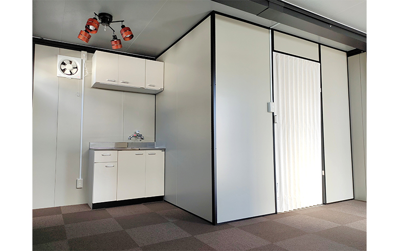 鼻隠し(面)| 本体税別価格 | 357.9万円→3,359,000円(税込3,694,000円)※6.1%OFF | 坪数 | 6.3坪 | 寸法外寸 | 幅:4500mm×奥行き:4600mm×高さ:2600mm | 室内内寸 | 幅:4350mm×奥行き:4450mm×高さ:2320mm | 用途 | 簡易住宅・離れ・趣味部屋 | 展示場所 | 大阪堺第2展示場 | 店長のコメント | U-prefabオリジナルユニットハウス A-space AC-6型(12.6畳)簡易住宅仕様が入荷しました。 室内は、トイレブース・シャワーブース・洗濯パン・ミニ流し台を取り付けし、簡易住宅としておすすめのハウスに仕上がりました。 屋根は遮熱塗料タフコートを施し、床はタイルカーペット貼りとなっており、照明器具もすでに取付けされているため、設置後すぐにお使いいただけます。 頑丈な鉄骨フレームを採用しているため、ご希望で2階建てにすることも可能です。 全て新品の部材を使用しておりますが、製作・運搬・設置時に小キズや凹み等つく場合がございますので、アウトレット品扱いとしています。 展示品のため、受注後最短10日程度で即納可能な商品です。 値引前価格にて、ドア・窓の位置やカラーを変更したオーダー品を、受注後約1.5ヶ月で製作可能です。 掲載価格は商品代金のみとなり、別途運搬費・設置工事費等が必要になります。 大阪堺第2展示場でご覧いただけます。是非一度お越しください。 ■屋根遮熱塗装 熱交換塗料タフコートを使用しており、夏は蓄熱を抑え室温-2℃程度の効果と冬は保温効果がありますので、年間電力消費の削減が期待できます。 詳細は、メーカーホームページ(下記URL)をご覧ください。 |