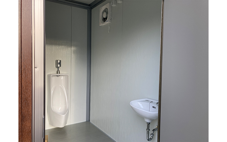 鼻隠し(面)| 本体税別価格 | 1,380,000円(税込1,518,000円) | 坪数 | 2.5坪 | 寸法外寸 | 幅:3600mm×奥行き:2300mm×高さ:2600mm | 室内内寸 | 用途 | トイレ | 展示場所 | 展示無し | 店長のコメント | 2.5坪(約5畳)の水洗トイレユニットです。 【洋式便器①・小便器①・手洗い①・換気扇①・道具入れ①】 ダークブラウン木目パネルを採用し、落ち着いた印象に仕上がりました。 窓には面格子付きで、防犯対策もバッチリです! 道具入れスペースを広々確保していますので、掃除道具を入れたり、消耗品の保管などにも困りません。 受注生産となりますので、納期までお時間をいただきます。 お客様のご希望にあわせてカスタムしていただくことも可能です。 ご相談・お見積りは無料ですので、お気軽にお問合せください。 設置・運搬費は別途となります。 納品の際は、4t以上のユニック車で運搬・設置致します。 詳しい設置条件等は、岩沼展示場までお問合せ下さい。 ※給排水工事、一次側電気工事は別途必要です。 ※新品の部材を使用しておりますが、組立・運搬時に小キズができてしまう場合がある為、アウトレット品でのご案内となります。 ※海外製の為、耐雪仕様ではありません。降雪時はこまめに雪降ろしを行っていただく等の積雪対策をお願い致します。 |