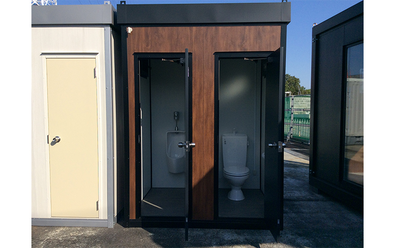 鼻隠し(面)| 本体税別価格 | 686,000円(税込754,600円) | 坪数 | 0.7坪 | 寸法外寸 | 幅:1800mm×奥行き:1365mm×高さ:2580mm | 室内内寸 | 用途 | トイレ | 展示場所 | 展示無し | 店長のコメント | 0.7坪アウトレット水洗トイレです。 ブラックフレームに外壁はダークブラウンで落ち着いた雰囲気のトイレになっております。 入り口ドアと小窓はブラックで引き締まった印象です。 洋式と小専用の個室で男性用・女性用として分けてお使いいただけます。 個室の便器は洋式のみ・小専用のみなど変更可能です。 オプションで洋式便器にウォシュレットを取り付け出来ます。(別途料金) ※納品の際は、基本4t以上のユニック車で運搬・設置いたします。 ※運搬・設置費は別途となります。 ※部材は全て新品を使用しておりますが、運搬設置時にキズやへこみが生じる可能性が ございますのでアウトレットとしてのご案内になります。 ※詳細は埼玉三郷展示場までお気軽にお問い合わせください。 |