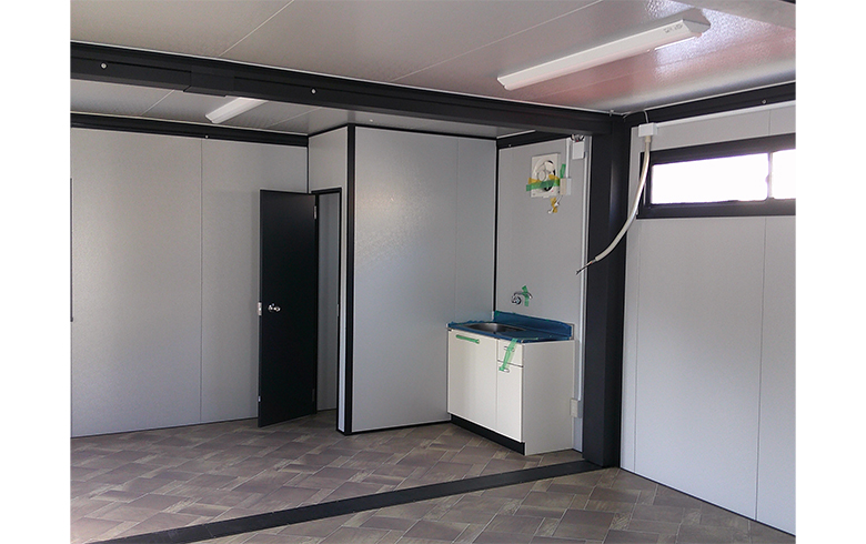NO.5834 ユニットハウス11.3坪タイプ(トイレブース・ミニキッチン付・玄関デッキ仕様) ※7.7%OFF