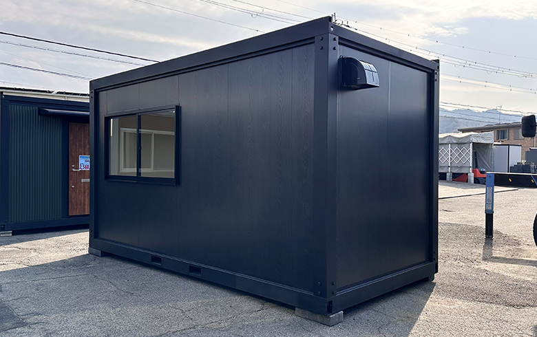 鼻隠し(面)| 本体税別価格 | 116.7万円→1,054,000円(税込1,159,400円)※9.7%OFF | 坪数 | 3.1坪 | 寸法外寸 | 幅:4500mm×奥行き:2300mm×高さ:2600mm | 室内内寸 | 幅:4350mm×奥行き:2150mm×高さ:2320mm | 用途 | 事務所・休憩室 | 展示場所 | 大阪岬展示場 | 店長のコメント | U-prefabオリジナルユニットハウス A-space AC-3型(6.2畳)が入荷しました。 ダークブラウンとブラックのツートンカラーがシックな印象を与える商品です。 全て新品の部材を使用しておりますが、製作・運搬・設置時に小キズや凹み等つく場合がございますので、アウトレット品扱いとしています。 展示品のため、受注後最短10日程度で即納可能な商品です。 値引前価格にて、ドア・窓の位置やカラーを変更したオーダー品を、受注後約1.5ヶ月で製作可能です。 掲載価格は商品代金のみとなり、別途運搬費・設置工事費等が必要になります。 大阪岬展示場でご覧いただけます。是非一度お越しください。 |