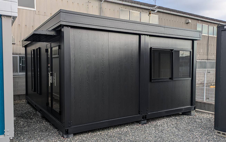 鼻隠し(面)| 本体税別価格 | 255.4万円→2,319,000円(税込2,550,900円)※9.2%OFF | 坪数 | 7.5坪 | 寸法外寸 | 幅:5400mm×奥行き:4600mm×高さ:2600mm | 室内内寸 | 幅:5250mm×奥行き:4450mm×高さ:2320mm | 用途 | 事務所・店舗・休憩室 | 展示場所 | 大阪堺展示場 | 店長のコメント | U-prefabオリジナルユニットハウス A-space AC-8型(15畳)が入荷しました。 人気のオールブラック仕様で現代的で高級感のあるスタイリッシュな外観が魅力です。 頑丈な鉄骨フレームを採用しているため、ご希望で2階建てにすることも可能です。 全て新品の部材を使用しておりますが、製作・運搬・設置時に小キズや凹み等つく場合がございますので、アウトレット品扱いとしています。 展示品のため、受注後最短10日程度で即納可能な商品です。 値引前価格にて、ドア・窓の位置やカラーを変更したオーダー品を、受注後約1.5ヶ月で製作可能です。 掲載価格は商品代金のみとなり、別途運搬費・設置工事費等が必要になります。 大阪堺展示場でご覧いただけます。是非一度お越しください。 |