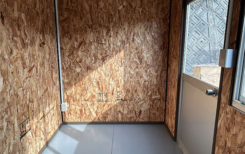 鼻隠し(面)| 本体税別価格 | 298,000円(税込327,800円) | 坪数 | 1.5坪 | 寸法外寸 | 幅:2730mm×奥行き:1820mm×高さ:2520mm | 室内内寸 | 幅:2580mm×奥行き:1680mm×高さ:2320mm | 用途 | 事務所・店舗・その他 | 展示場所 | 大阪富田林展示場 | 店長のコメント | 中古ユニットハウス1.5坪(3畳)タイプが入荷しました。 外壁は人気のブラックに再塗装し、内壁にはOSBボードを貼ることで、おしゃれな内装に 仕上げています。 整備・修繕はしておりますが、中古品ですのでガラスに日焼け跡・キズ・凹み・穴修理跡等が ございます。 現品をご確認していただくことをおすすめいたします。 狭い場所では2tユニック車での納品が可能な商品です。 展示品のため、受注後最短10日程度で即納可能な商品です。 掲載価格は商品代金のみとなり、別途運搬費・設置工事費等が必要になります。 大阪富田林展示場でご覧いただけます。是非一度お越しください。 ※こちらの商品は、関西エリアのお客様限定とさせていただきます。 |