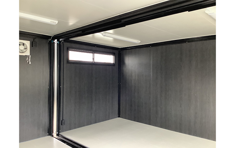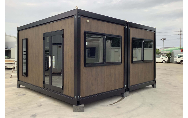 鼻隠し(面)| 本体税別価格 | 2,100,000円(税込2,310,000円) | 坪数 | 6.3坪 | 寸法外寸 | 幅:4500mm×奥行き:4600mm×高さ:2600mm | 室内内寸 | 幅:4360mm×奥行き:4440mm×高さ:2310mm | 用途 | 事務所・店舗・休憩室・離れ・その他 | 展示場所 | 埼玉三郷展示場 | 店長のコメント | 4500×2300サイズを2棟連結した奥行きのある6.3坪空間で、事務所や応接室、ショップ、休憩室、作業場など幅広い用途に使いやすい広さが魅力です。 ブラックフレームに外壁はダークブラウン木目、内壁にはブラック木目パネルを採用し、重厚感と高級感のある落ち着いたデザインに仕上げました。 玄関には親子ドアを採用しており、間口が広く、家具や什器、資材などの荷物の出し入れもスムーズ。レイアウトしやすい室内で実用性にも優れ、即納可能なアウトレット品のため、すぐに設置・使用したい方にもおすすめの一棟です。 ※運搬・設置費は別途です。(4tユニック車での運搬・設置となります) ※新品の部材を使用しておりますが、組立・運搬時に小キズがつく場合がある為、アウトレット品としてのご案内です。 ※詳細はお気軽にお問い合わせください。 |