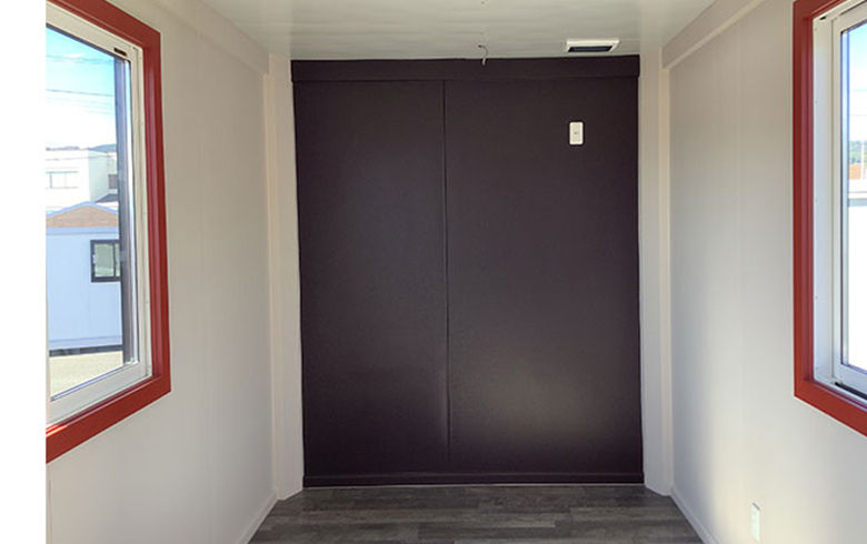 鼻隠し(面)| 本体税別価格 | 2,560,000円(税込2,816,000円) | 坪数 | 3.3坪 | 寸法外寸 | 幅:4825mm×奥行き:2280mm×高さ:2625mm | 室内内寸 | 用途 | 事務所・店舗・休憩室・趣味部屋 | 展示場所 | 埼玉三郷展示場 | 店長のコメント | 埼玉三郷展示場に、人気のコンテナタイプのユニットハウスの登場です! 外観は人気のガルバリウム鋼板を採用したスタイリッシュなデザイン。 ブラックの外壁にアクセントとなる赤いドアが映える、シンプルでおしゃれなコンテナハウスです。 室内はクッションフロア仕上げとなっており、お手入れもしやすく清潔感のある空間です。 窓も設置されているため、室内は明るく快適にお使いいただけます。 また、シャーシ付きのため移動が可能で、設置場所の自由度が高いのも特徴です。 事務所・店舗・趣味部屋・作業スペースなどさまざまな用途におすすめのコンテナハウスです。 ※運搬費・設置費は別途となります。 ※現地調査も行うことが可能です。設置できるか不安な方はご相談ください。 ご不明点などございましたら、埼玉三郷展示場までお気軽にお問い合わせください。 |