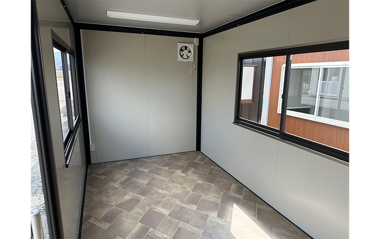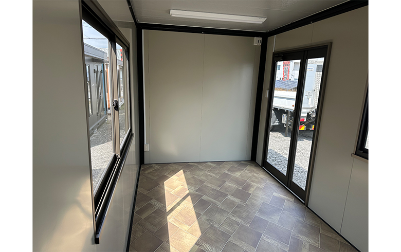 鼻隠し(面)| 本体税別価格 | 127.9万円→1,158,000円(税込1,273,800円)※9.5%OFF | 坪数 | 3.1坪 | 寸法外寸 | 幅:4500mm×奥行き:2300mm×高さ:2600mm | 室内内寸 | 幅:4350mm×奥行き:2150mm×高さ:2320mm | 用途 | 事務所・休憩室・倉庫 | 展示場所 | 滋賀彦根展示場 | 店長のコメント | U-prefabオリジナルユニットハウス A-space AC-3型(6.2畳)が入荷しました。 外壁はマーブル柄ホワイトで景観に溶け込む外観です。 入口は大きな親子扉で事務所や店舗にも使っていただきやすい仕様です。 床はクッションフロア貼り・照明はLEDが標準装備となり、窓には網戸が付いています。 コンパクトなサイズで、多様な用途にご利用いただけるハウスです。 全て新品の部材を使用しておりますが、製作・運搬・設置時に小キズや凹み等つく場合がございますので、アウトレット品扱いとしています。 展示品のため、受注後最短10日程度で即納可能な商品です。 値引前価格にて、ドア・窓の位置やカラーを変更したオーダー品を、受注後約1.5ヶ月で製作可能です。 掲載価格は商品代金のみとなり、別途運搬費・設置工事費等が必要になります。 滋賀彦根展示場でご覧いただけます。是非一度お越しください。 ※こちらの商品は、関西エリアのお客様限定とさせていただきます。 |