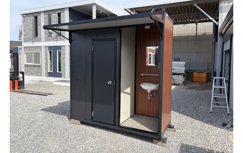 鼻隠し(面)| 本体税別価格 | 54.2万円→515,000円(税込566,500円)※5%OFF | 坪数 | 0.6坪 | 寸法外寸 | 幅:2280mm×奥行き:900mm×高さ:2385mm | 室内内寸 | 用途 | トイレ・手洗い | 展示場所 | 大阪堺展示場 | 店長のコメント | U-prefabオリジナルトイレハウス K-space K-T0.6型(1.2畳)です。 手洗い器の取付け面を茶木目の壁パネルをアクセントとして採用しており、外壁パネルは黒木目と茶木目を使用し、落ち着いた雰囲気のトイレハウスとなっております。 洋式トイレと手洗い器を省スペースに詰め込んだ、大変お買い得な一品です。 電気・給排水の工事をすればすぐにご利用可能です。 狭い場所では2tユニック車での搬入が可能な商品です。 全て新品の部材を使用しておりますが、製作・搬入・設置時に小キズや凹み等つく場合がございますので、アウトレット品扱いとしています。 展示品のため、受注後最短10日程度で即納可能な商品です。 掲載価格は商品代金のみで、別途搬入作業費・設置工事費等が必要になります。 大阪堺展示場でご覧いただけます。是非一度お越しください。 |