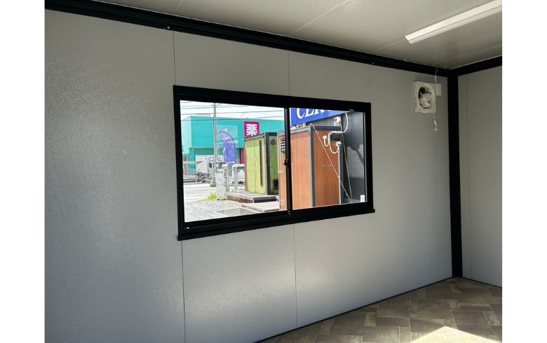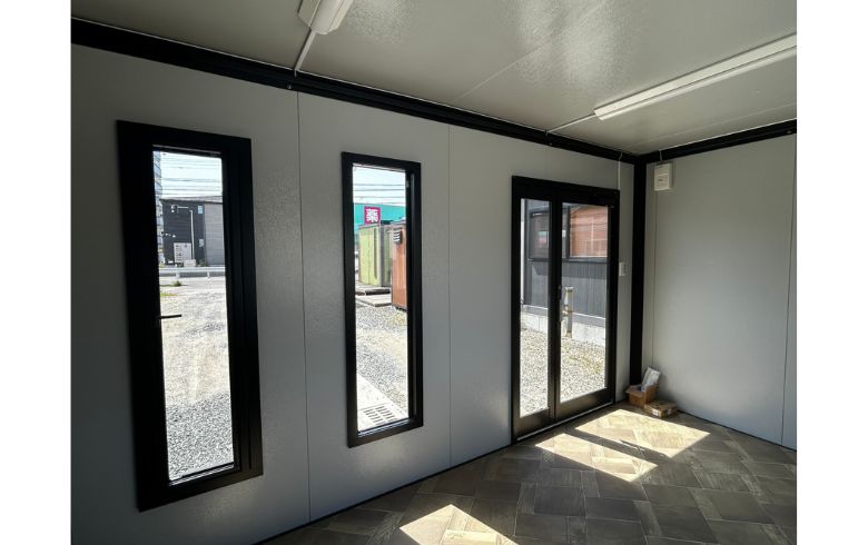 鼻隠し(面)| 本体税別価格 | 125.8万円→1,145,000円(税込1,259,500円)※9%OFF | 坪数 | 3.1坪 | 寸法外寸 | 幅:4500mm×奥行き:2300mm×高さ:2600mm | 室内内寸 | 幅:4350mm×奥行き:2150mm×高さ:2320mm | 用途 | 事務所・店舗・その他 | 展示場所 | 福岡糸島展示場 | 店長のコメント | U-prefabオリジナルユニットハウス A-space A-3型(6.2畳)が入荷しました。 外壁は規格エンボス柄ホワイト、フレームはブラック色を採用し、とても明るいハウスに仕上がっております。 落ち着いた雰囲気でおしゃれなユニットハウスに仕上がりました。 出入口は親子扉・窓網戸付きの大窓と縦すべり出し窓・中FIX窓を1面ずつ装備しています。 設置後に電気をつなげばすぐにご利用になれます。 展示品のため、受注後最短10日程度で即納可能な商品です。 値引前価格にて、ドア・窓の位置やカラーを変更したオーダー品を、受注後約1.5ヶ月で製作可能です。 全て新品の部材を使用しておりますが、製作・搬入・設置時に小キズや凹み等つく場合がございますので、アウトレット品扱いとしています。 掲載価格は商品代金のみとなり、別途搬入作業費・設置工事費等が必要になります。 福岡糸島展示場でご覧いただけます。是非一度お越しください。 ※こちらの商品は、山口県、九州エリアのお客様限定とさせていただきます。 |